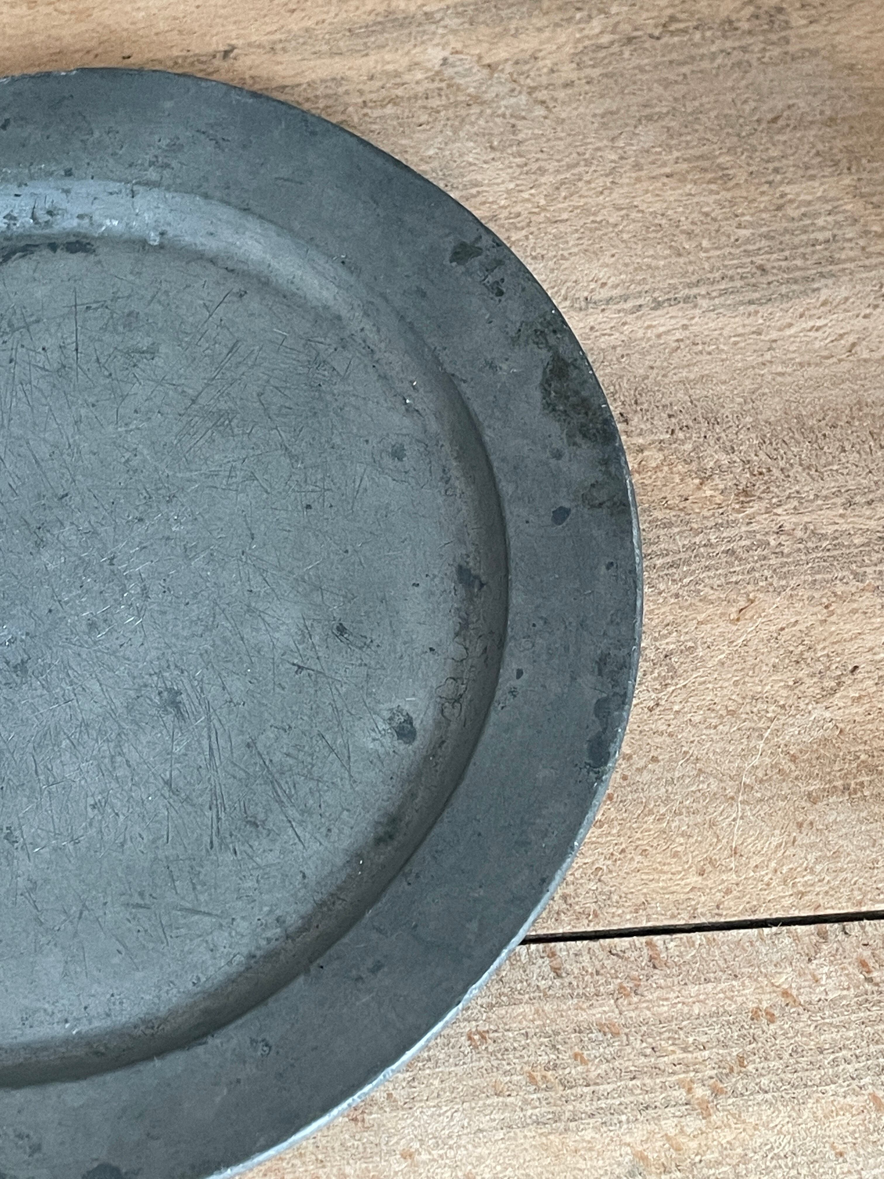 ショップでマネートレーとして使用していたものです。シンプルな丸皿で、素材の特徴である歪んだ姿がまた魅力的です。
